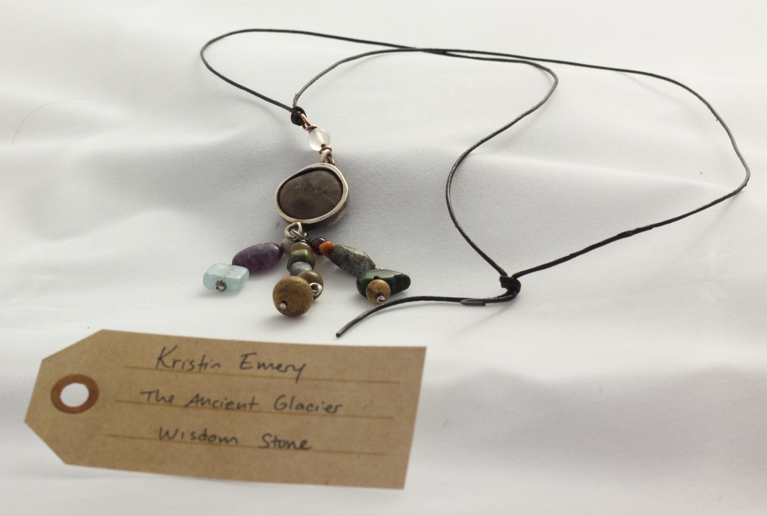 One of my goals for this trip had been to find a Petoskey stone. […] I had been walking along for like 20 minutes on the top of this magical cliff […] and I looked down and there was one right at my foot, just a little guy. […] So I picked it up, and took it home and I polished it up and was so exited I was like “alright, I’m gonna make it into a necklace. So I took some wire and I just wrapped it up and wore it” […]