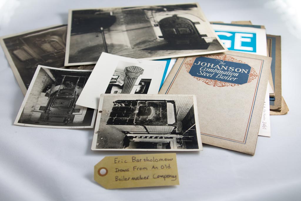 These are from an estate sale…and it looked like a regular office, and in the back there was this big workspace area. It turned out it was a former boilermaker company, and it was a service and sales location. It started out as Johanssen Water Heater Company, which was at 1239 Fullerton, which now is a Starbucks. This is a letterhead from them. It was mostly a lot of tools and stuff at this sale, but I found this one little packet of old brochures and stuff. And it was really full of nicely printed old technical drawings…and photographs of their machinery. There was even one that shows pictures of buildings where they had installed their steam boilers… Some of these [boilers] are still around, if you live in an old Chicago apartment building…Then there is a book of Boiler Tube Facts… and this from the District Police of Massachusetts, The Steam Boiler Rules, published by the Board of Boiler Rules…These were fun to find, and it makes me think of all the things that might be hidden away in old Chicago buildings just waiting to be discovered.