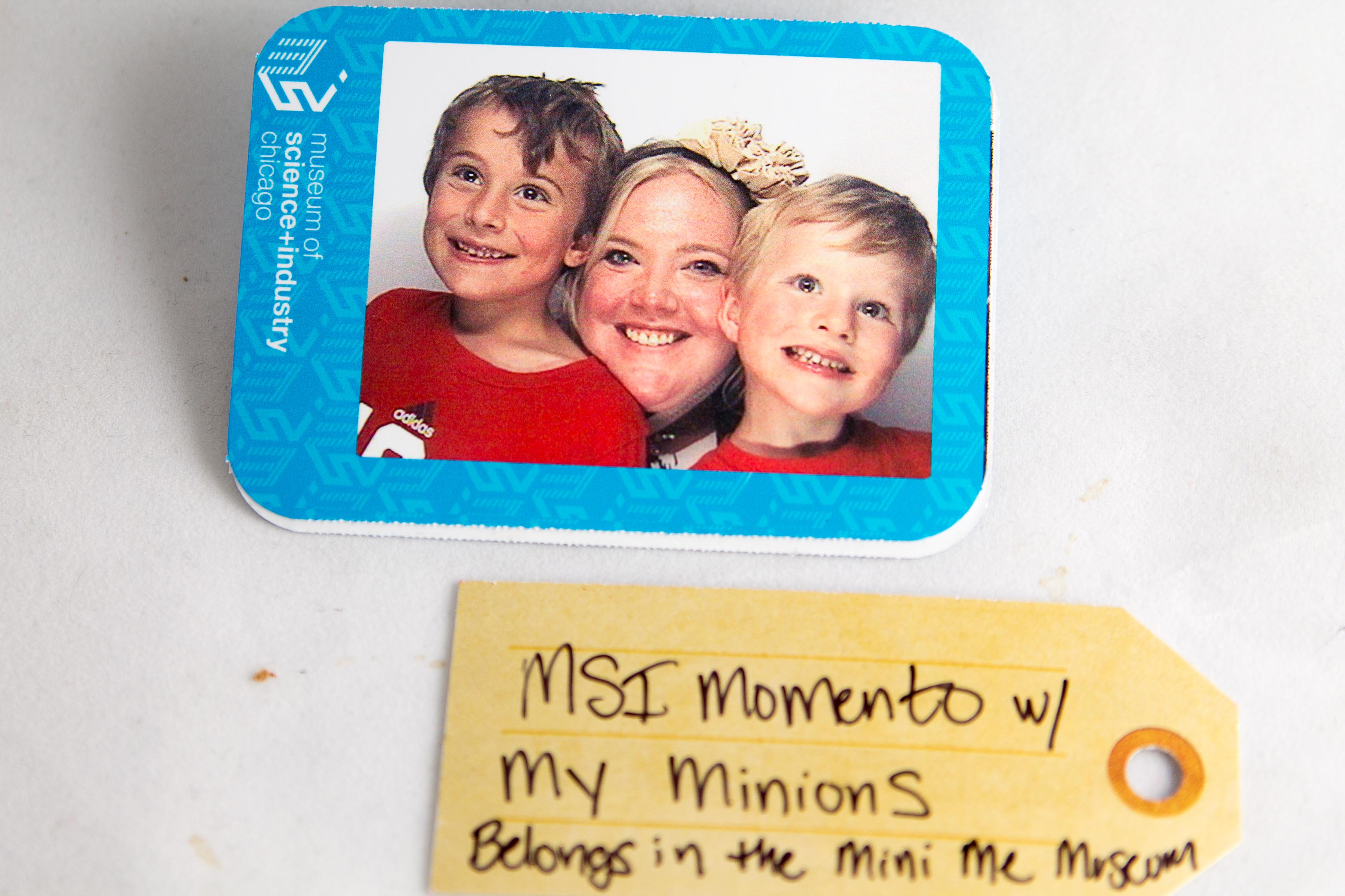 I just have a little card, I actually got it today when I went to the MSI. I was hanging out with these little guys, I used to be their nanny. I’ve just been hanging out with them this summer and we’ve been going to all the museums. […] Every time we go to the museum we have to go to the gift shop. We can’t buy anything so we just go and look around, and finally today we went to the photobooth. What makes this really special is that they are quite the characters. I call them my Minions. […] If you’ve ever met one of these spirited children, you understand my feelings when I talk about this little guy. […] He has all these Evan mannerisms. When he was about two, he nicknamed me Poppy, I have no idea why […] except that I like to drink Diet Coke and I call it pop.