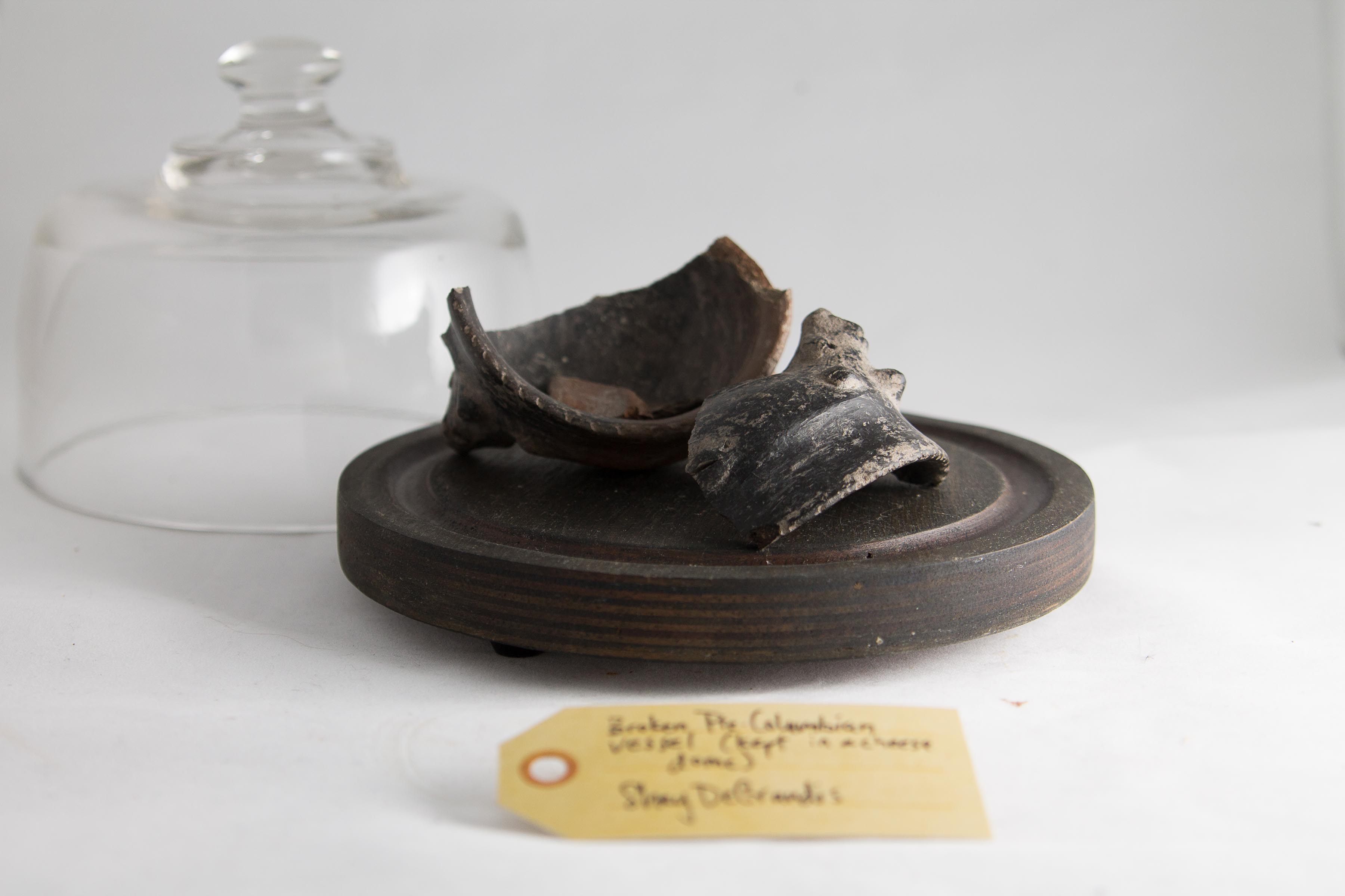He was a teacher so the most important thing to him about learning other cultures was sharing them with his students and so in his office he had a box of pre-Columbian artifacts. […] He would take them to class and let all the students touch them. […] After he passed away I ended up with them. […] So I have this pre-Columbian tripartite bowl that survived Incan culture and Conquistadores, and Columbus, and ravaged by disease and all sorts of Colonialism and the hands of SAIC students. And here it is, what’s left of it. […] I broke it while I was cleaning it survived all of those years and I broke it while I was cleaning. And I’ll never clean again.