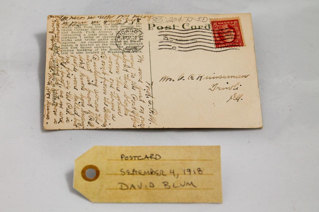 My father was a geographer with a particular interest in cities. […] Going through his things I found a whole stack of postcards. […] I don’t know whether he accumulated these over a period of time or whether he went to some junk shop and found the whole stack. […] I was going through and reading some of the postcards which were actually mailed… But this one in particular… I read, and it was a little bit more specific and interesting. […] Sept. 4 1918 which was the bombing of the federal building downtown. […] Museum of relatively important postcards, or a museum of mirrors so you can see the front and back at the same time.