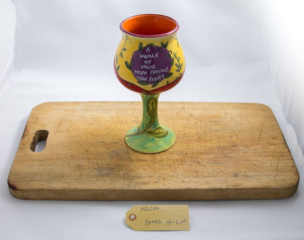 It struck me that they have something very important in common: this is not a very good cutting board it wobbles terribly and I have to jam a rag under the corner… and this is basically useless to drink out of. We keep salt in it but it’s not very good at holding salt…