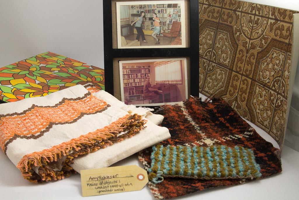 So I mainly just have a few objects from my grandma’s house…this for instance…is a swatch [of fabric from my grandma’s couch].