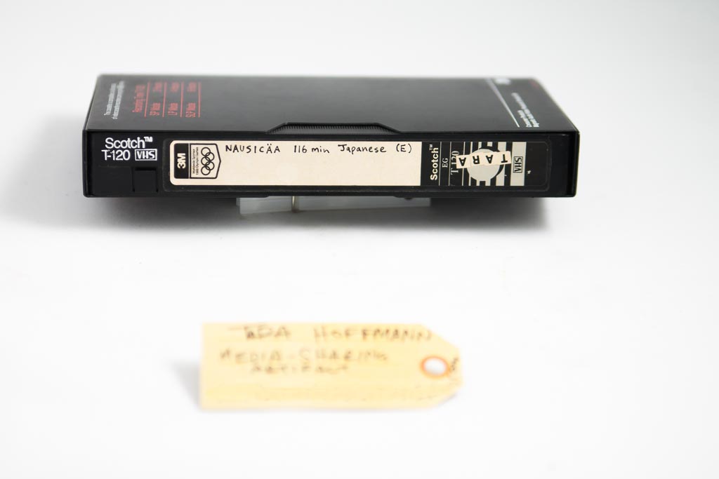 I brought a VHS tape, which, although an artifact itself, I called it on my tag a media sharing artifact. This particular tape is how anime enthusiasts got their fix in the 1980s as I did myself. This was back in the day when there was no Internet, pre-Internet. [Audience: “What?!”] To share your enthusiasms, you first had to attend a Star Trek convention, where you met the woman who was in the US Navy, stationed in Japan, and would dub anime for you, if you sent her all of the requisite items.