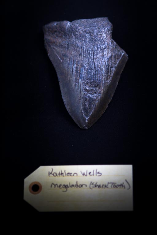 My son was very fond of a couple of things when he was growing up, one of which was sharks. And my husband’s father was the head of the science department at Joliet Township High School, and he had quite a collection of fossils and other assorted things, and in that collection was this. It’s a megalodon shark tooth. It probably belongs in a science museum, but I think I am going to put it into the Cabinet of Curiosities of the Wells Family.