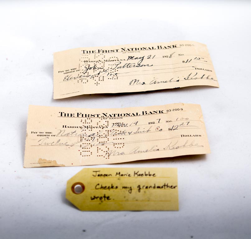 I brought two cancelled checks that my grandmother wrote. One was in March of 1927 and the other is in May of 1928. These two checks in and among themselves are not so important except that they represent something about my grandmother.
