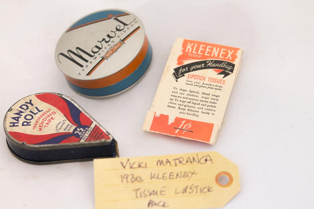 I like to collect things that are about everyday life, [and] this is what I wanted to talk about today–this is called Kleenex lipstick tissues, and this says it’s for your handbag.