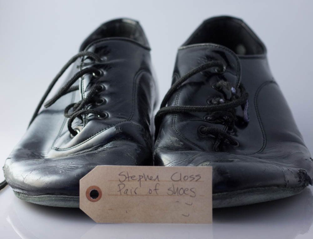 I’m a ballroom dancer. These used to be my shoes. […] This is the third pair of dance shoes I’ve owned. I didn’t hold onto the first pair, it’s lost to the ages, and second pair disintegrated. And these are halfway there, I don’t know if you can see, there’s a hole right about there. So I felt like these are, if anyone knows the story of the Twelve Dancing Princesses, they danced all night and they danced their shoes until they had holes; it didn’t take me one night, it took me about two years to do that, but I still think of it as an accomplishment.