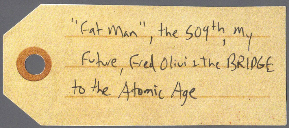 So why do I have this image? [Fred Olivi] was my grandfather’s very good friend; his brother was my grandfather’s dentist. So as a young child who loved the military and airplanes (I fit my gender norms nicely), my grandfather said “You’ve got to meet Fred Olivi.” For some reason Fred Olivi had a stack of 8 x 11’s of his crew and the weapon they left behind. And he signed it to me, to my name, on top of the mushroom cloud that killed 60,000-80,000 people that ‘the future is in my hands.’ […]