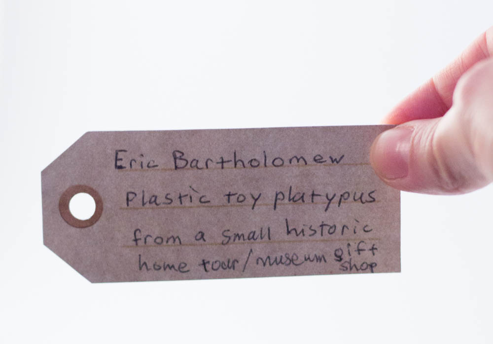 Hello. My name is Eric and I write a zine called “Junk Drawer,” and junk drawers are kind of like museums of little odds and ends, really, sometimes they’re things that are saved sometimes for a reason, and sometimes they don’t know why they really save things. And in thinking about what could go on in a museum, I looked through and the closest thing that I have was something I got a museum gift shop. And I have a picture of it here; it’s a little plastic platypus.